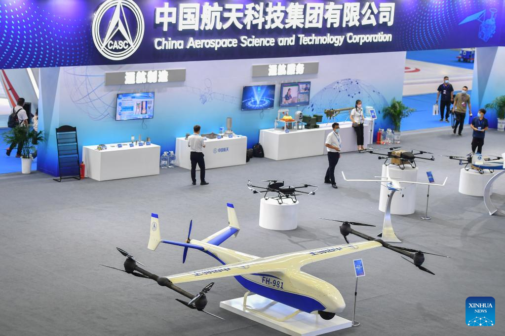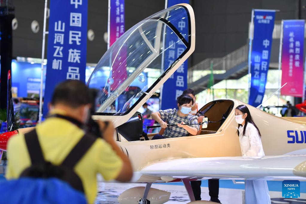Visitors are seen during the 2022 Hunan (International) General Aviation Industry Expo at the Changsha International Convention and Exhibition Center in Changsha, central China's Hunan Province, Sept. 1, 2022. The 2022 Hunan (International) General Aviation Industry Expo opened here on Thursday. The expo comprises a static exhibition at the Changsha International Convention and Exhibition Center in Changsha and an air show at the Lusong Airport of Zhuzhou City, both in central China's Hunan Province. (Xinhua/Chen Zeguo)