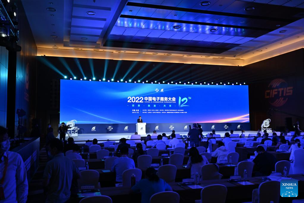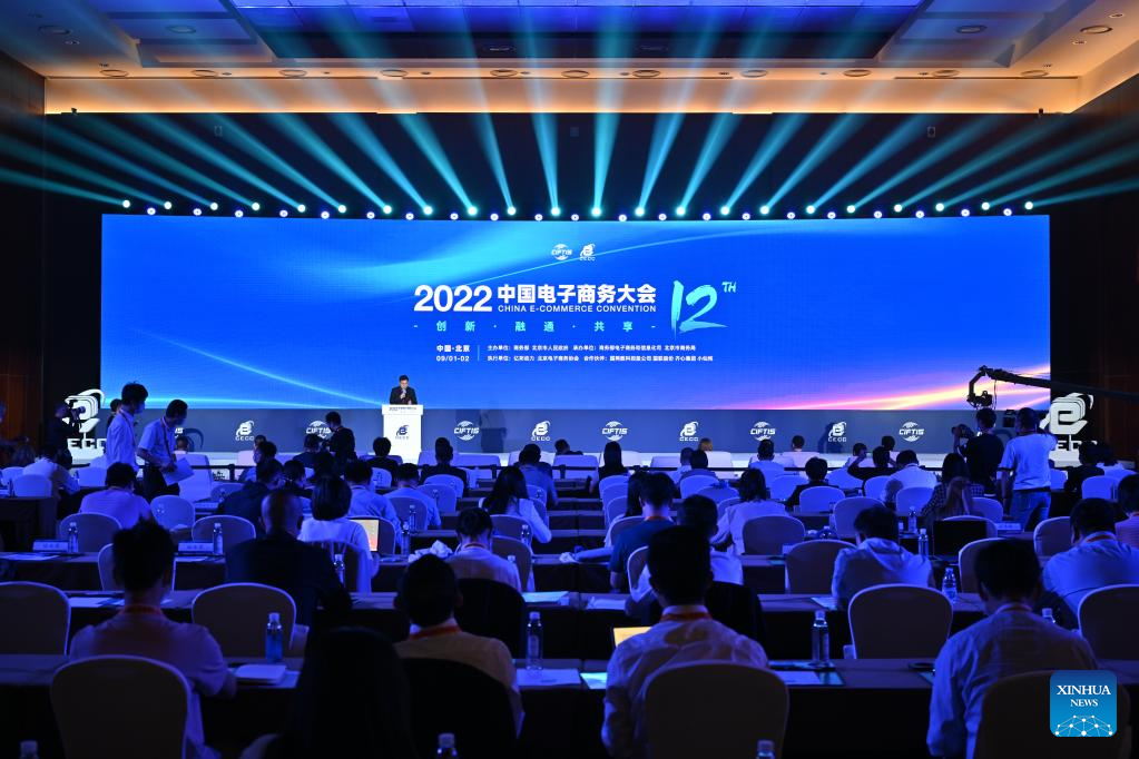 The opening ceremony and main forum of 2022 China E-Commerce Convention is held in Beijing, capital of China, Sept. 1, 2022. (Xinhua/Li Xin)