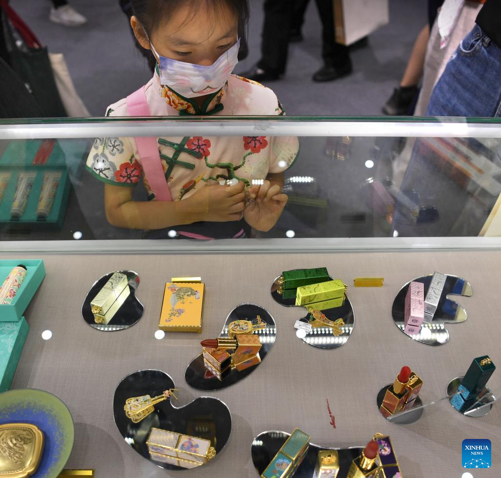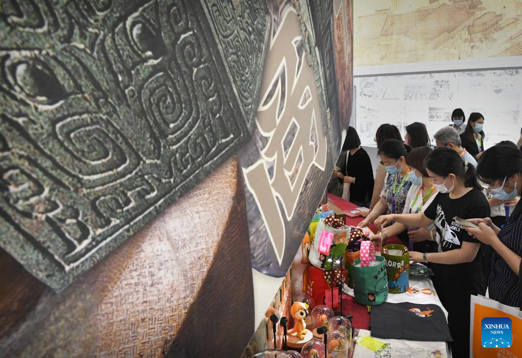 Visitors try out creative products-making at the 9th Chinese Museums and Relevant Products and Technologies Exposition (MPT-Expo) in Zhengzhou, capital of central China's Henan Province, Sept. 1, 2022. The 9th MPT-Expo opened here Thursday, where 437 museums across the country showcased their latest development and achievements in related areas. (Xinhua/Li An)