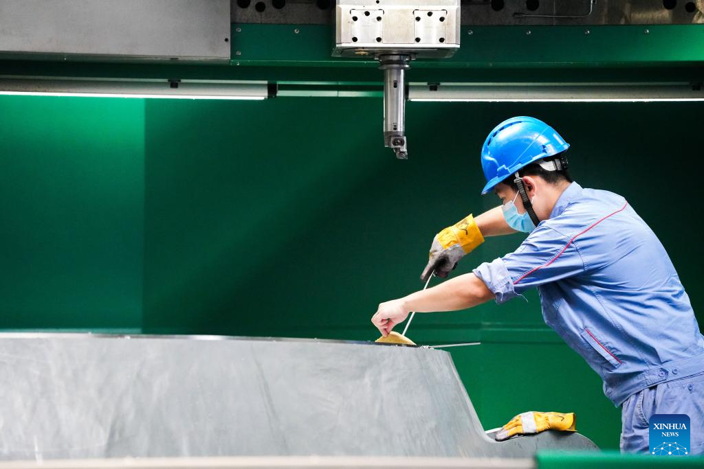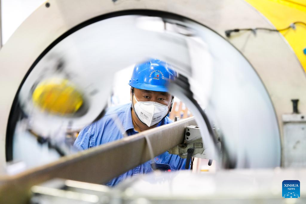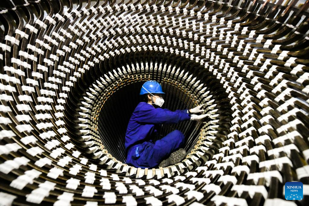 A worker works at a factory of Harbin Electric Machinery Company Ltd. of Harbin Electric Corporation in Harbin, northeast China's Heilongjiang Province, Sept. 3, 2022.
