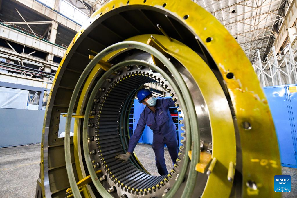 Harbin Electric Corporation, a leading Chinese electric machinery maker in Heilongjiang Province, has stepped up production following strict COVID-19 prevention and control measures. (Xinhua/Wang Song)