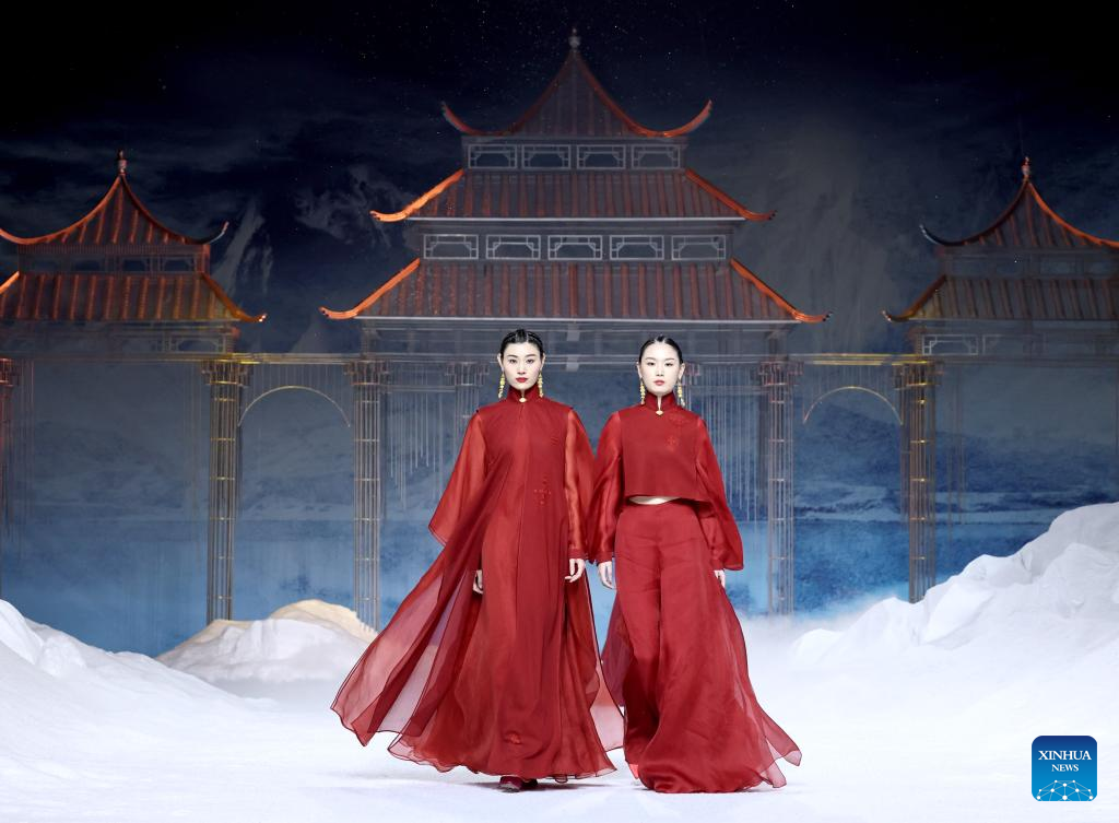 Models present creations by designer Xiong Ying during the opening fashion show of China Fashion Week S/S 2023 in Beijing, capital of China, Sept. 4, 2022. The fashion week kicked off here on Sunday. (Xinhua/Chen Jianli)