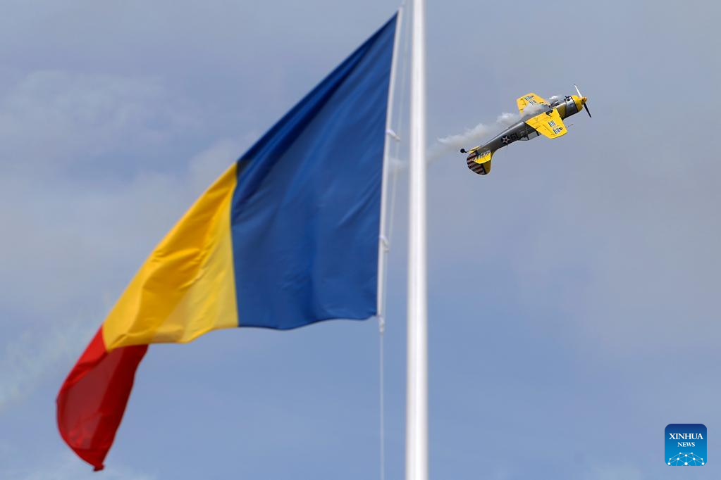 An airplane performs during Bucharest International Air Show &General Aviation Exhibition in Bucharest, Romania, on Sept. 4, 2022. (Photo by Cristian Cristel/Xinhua)