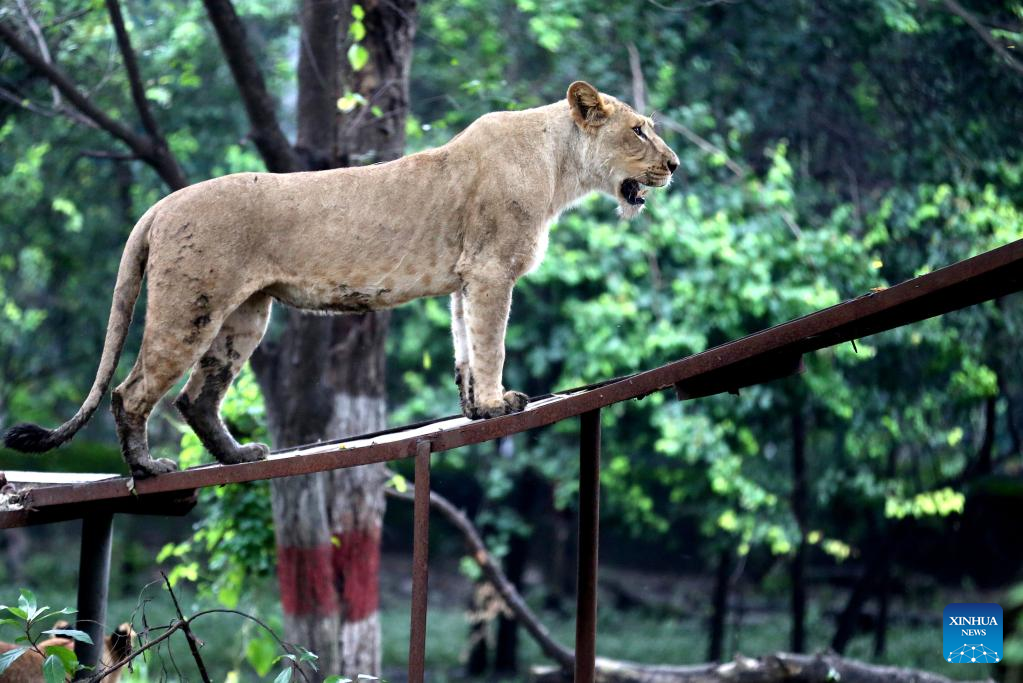 Photo taken on Sept. 4, 2022 shows a lioness at Kamla Nehru Zoological Park in Indore, 200 Km from Bhopal, capital of India's Madhya Pradesh state. (Str/Xinhua)