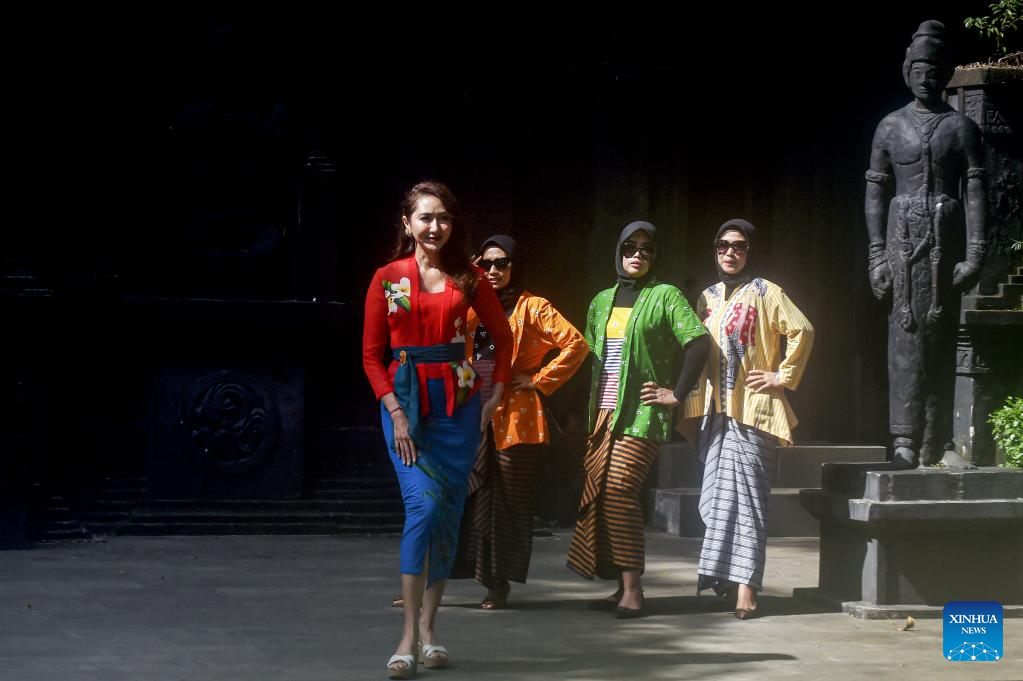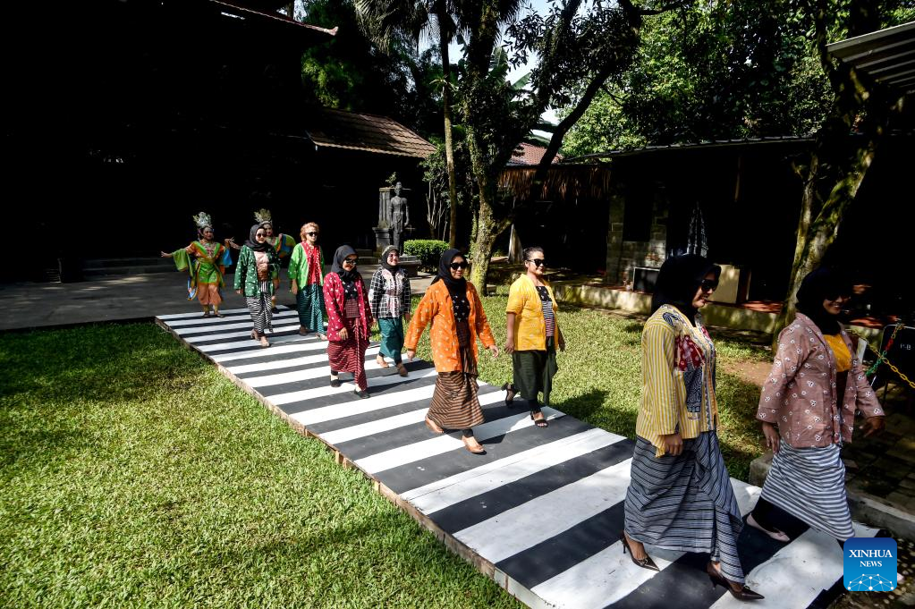 Women dressed in Kebaya, a traditional Indonesian costume, participate in a fashion show held at Rumah Budaya Nusantara Puspo Budoyo in South Tangerang, Banten Province, Indonesia, Sept. 4, 2022. (Xinhua/Agung Kuncahya B.)