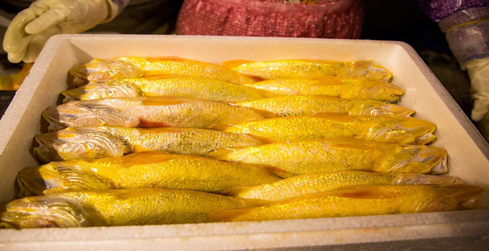 Photo shows high-quality large yellow croakers for sale at a market. (Photo courtesy of the interviewee)