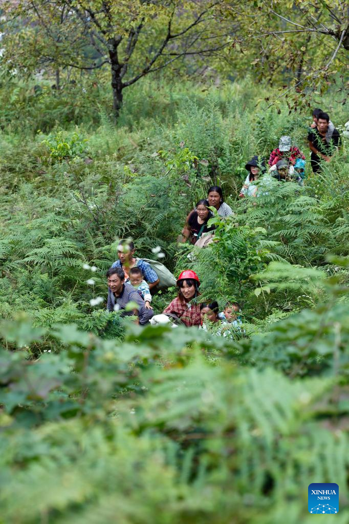Villagers are evacuated from Wandong Village of Detuo Town, in Luding County, southwest China's Sichuan Province, Sept. 6, 2022.