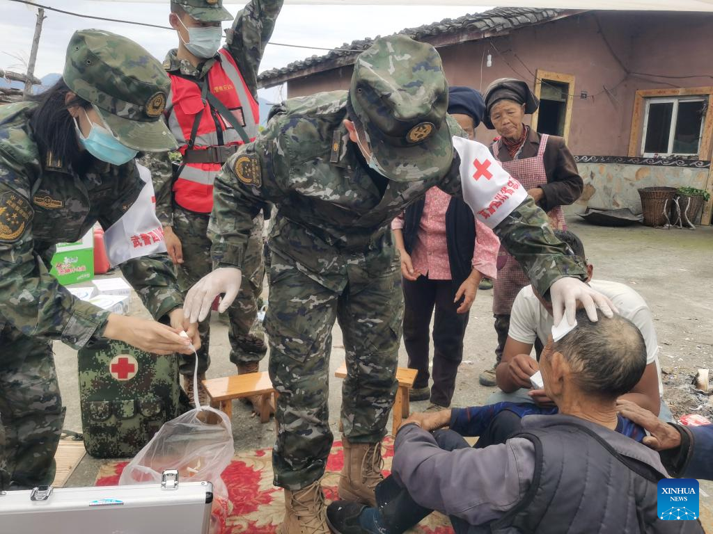Over 2,700 military and armed police personnel have been dispatched, as of 5 p.m. Tuesday, to assist with disaster response after a 6.8-magnitude earthquake struck Luding County in southwest China's Sichuan Province on Monday. (Photo by Hu Jianjun/Xinhua)
