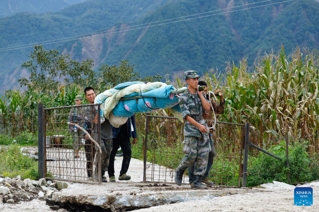 Over 2,700 military and armed police personnel have been dispatched, as of 5 p.m. Tuesday, to assist with disaster response after a 6.8-magnitude earthquake struck Luding County in southwest China's Sichuan Province on Monday. (Photo by Zhang Wenxuan/Xinhua)
