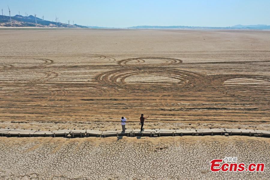 The 2,657-metre-long bridge built in Ming Dynasty (1368-1644) reappears as the water level continued to drop at Poyang Lake, Jiujiang city, east China's Jiangxi Province, Sept. 6, 2022. (Photo: China News Service/Liu Zhankun)