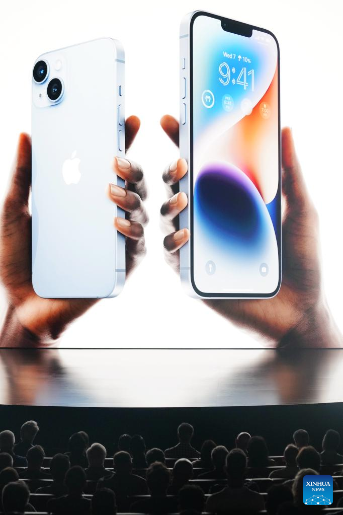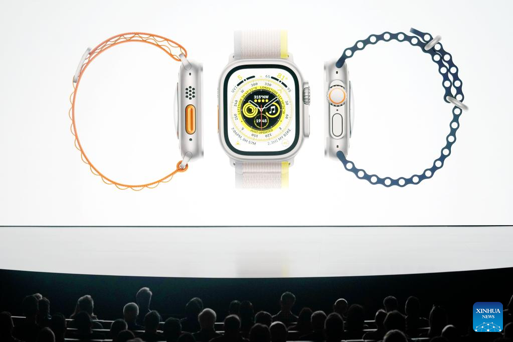 New Apple products are introduced during a product launch event in San Francisco Bay Area, California, the United States, Sept. 7, 2022. Apple on Wednesday announced new products during a product launch event held in the Steve Jobs Theater. (Xinhua)