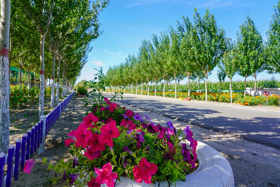 Photo taken on Aug. 12, 2020 shows a hardened road under an infrastructure reform in Chatai Village, Heiyupao Township, Zhenlai County, northeast China's Jilin Province. (Xinhua/Zhang Nan)
