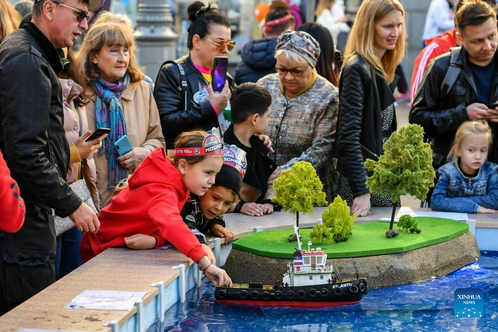 People take part in Moscow City Day celebrations in Moscow, Russia, Sept. 10, 2022. A series of events were held on Saturday to celebrate Moscow City Day, marking the city's 875th founding anniversary. (Xinhua/Cao Yang)