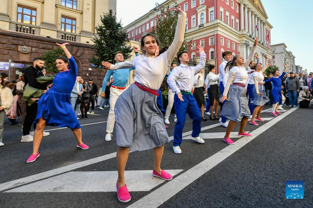 Artists perform during Moscow City Day celebrations in Moscow, Russia, Sept. 10, 2022. A series of events were held on Saturday to celebrate Moscow City Day, marking the city's 875th founding anniversary. (Xinhua/Cao Yang)