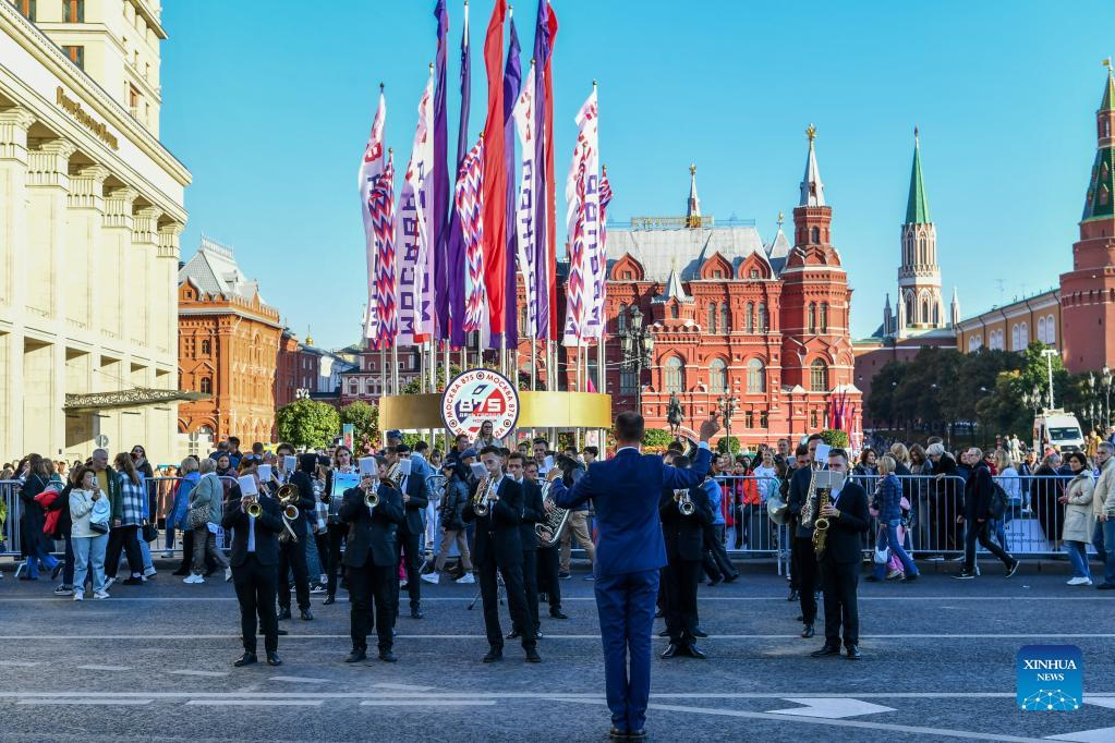 A band performs during Moscow City Day celebrations in Moscow, Russia, Sept. 10, 2022. A series of events were held on Saturday to celebrate Moscow City Day, marking the city's 875th founding anniversary. (Xinhua/Cao Yang)