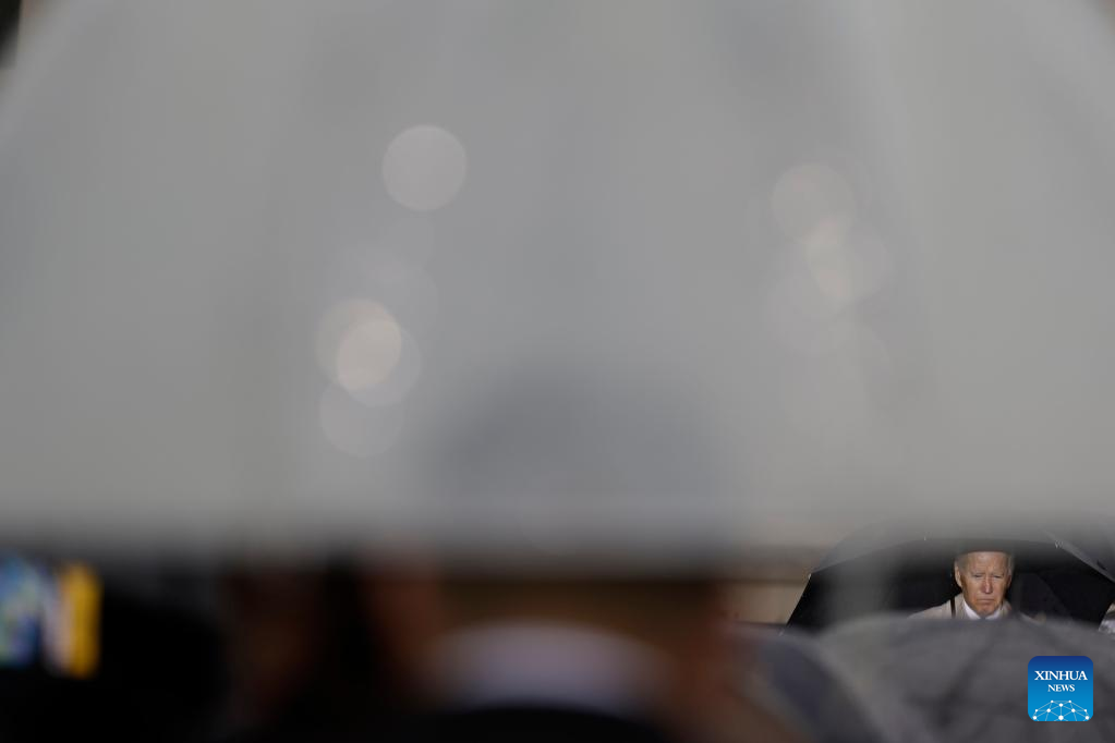 U.S. President Joe Biden participates in a ceremony marking the 21st anniversary of the 9/11 attacks at the Pentagon in Arlington, Virginia, the United States, on Sept. 11, 2022. (Photo by Ting Shen/Xinhua)