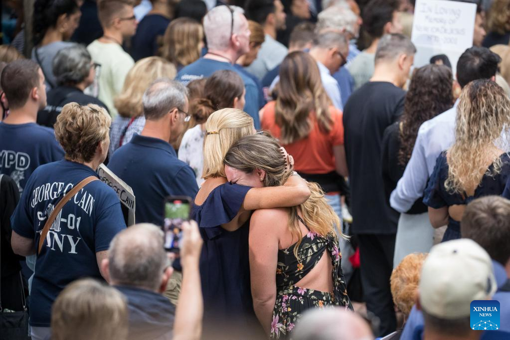 People attend a commemoration ceremony of the 21st anniversary of the 9/11 attacks in New York, the United States, on Sept. 11, 2022. (Photo by Michael Nagle/Xinhua)