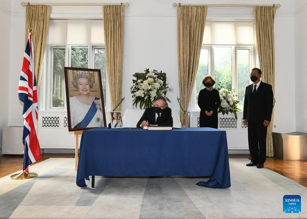 Wang stood in silent tribute in front of a portrait of Queen Elizabeth II and signed the condolence book. On behalf of President Xi Jinping and the Chinese government and people, Wang expressed deep condolences over the Queen's passing and extended sincere sympathy to the British royal family, government and people.