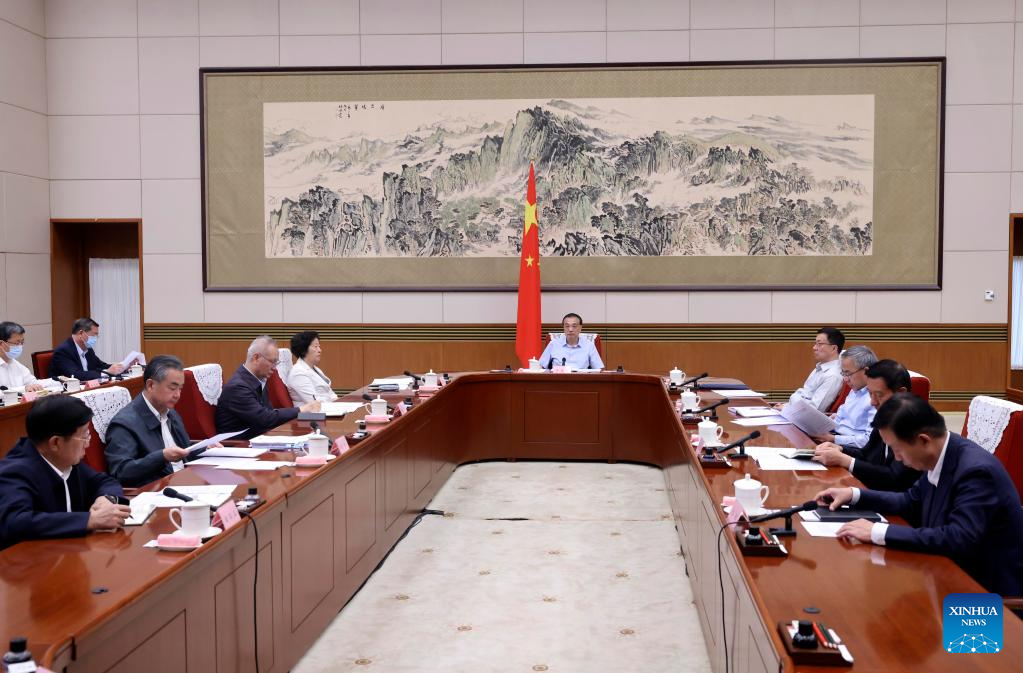 Chinese Premier Li Keqiang, also a member of the Standing Committee of the Political Bureau of the Communist Party of China (CPC) Central Committee, presides over a special meeting in Beijing, capital of China, Sept. 8, 2022. Li made remarks at the meeting after hearing reports from two working groups on work for stabilizing the economy.