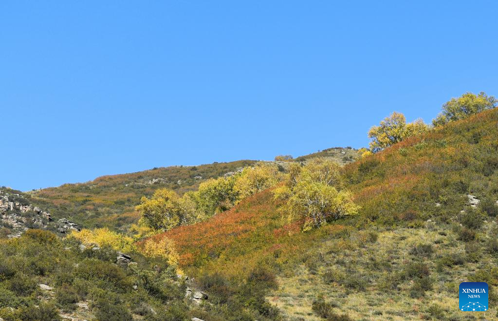 Photo taken on Sept. 13, 2022 shows the autumn scenery of Daqing Mountain in Hohhot of north China's Inner Mongolia Autonomous Region. (Xinhua/Liu Lei)