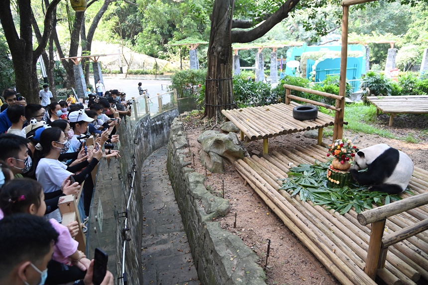 Born on Sept. 8, 2003 in Japan, the giant panda returned to its hometown in Chengdu, southwest China's Sichuan Province in 2007, and has lived in Shenzhen since 2017. To give more visitors a chance to celebrate the animal’s birthday together, the park arranged for the party to coincide with this year's Mid-Autumn Festival.