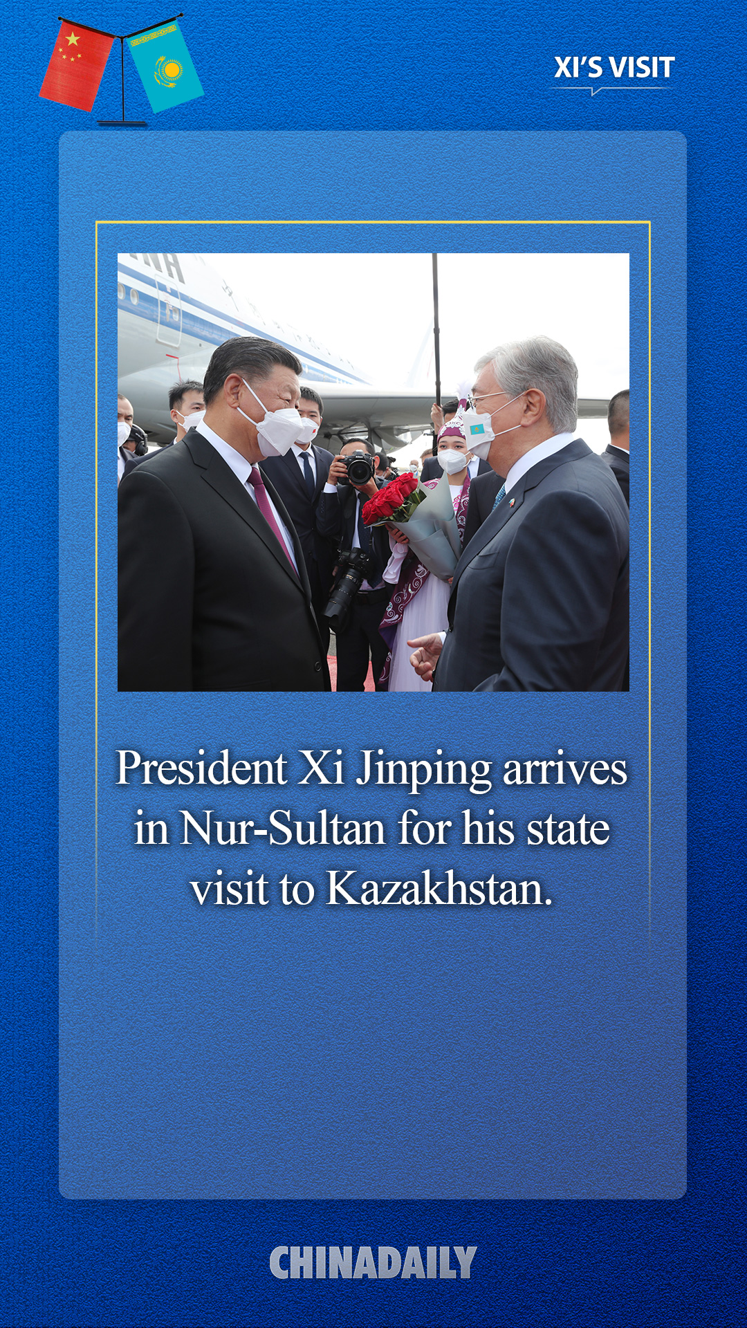 When Xi arrived in Nur-Sultan on Wednesday afternoon, he was warmly welcomed by Tokayev and a group of senior officials. Tokayev also later saw Xi off at the airport.
