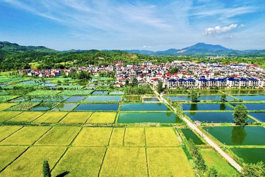 Photo taken on Aug. 14, 2022 shows a picturesque view in Minzhu village, Hantang township, Shanggao county, Yichun, east China's Jiangxi province. (People's Daily Online/Zou Liqiang)