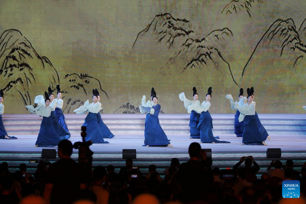Artists perform at the closing ceremony of the 13th China Art Festival in Xiongan New Area, north China's Hebei Province, Sept. 15, 2022. (Photo by Mao Heran/Xinhua)