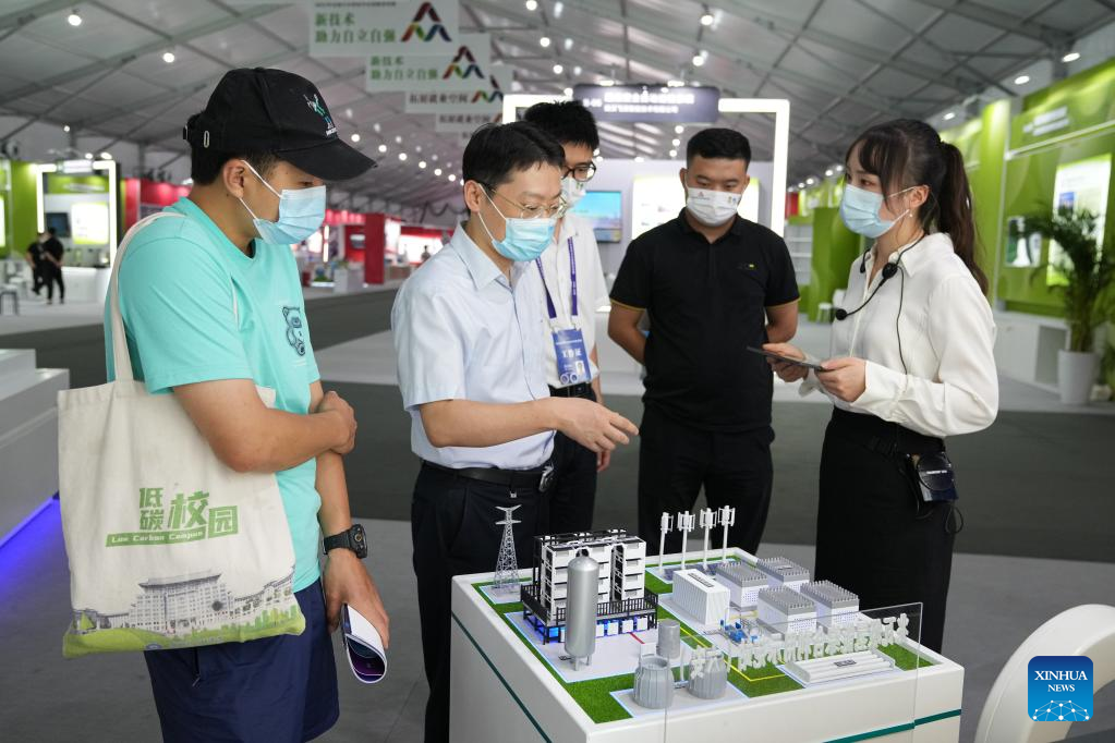 People learn about utilization of hydrogen energy at the main venue of 2022 national mass entrepreneurship and innovation week in Hefei, capital of east China's Anhui Province, Sept. 17, 2022. China holds a national mass entrepreneurship and innovation week from Sept. 15 to 21. Themed "Innovation drives vitality, entrepreneurship creates employment," the annual event, whose main venue is set in Hefei this year, is expected to see the launch of nearly 1,000 activities across the country, both online and offline. (Xinhua/Du Yu)