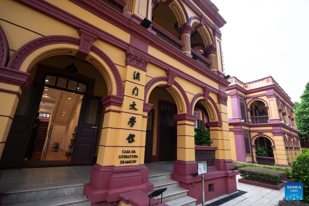 Photo taken on Sept. 17, 2022 shows the exterior view of the House of Macao Literature in south China's Macao. The opening ceremony of the House of Macao Literature, which will be open to the public on Sept. 18, 2022, was held here Saturday. (Xinhua/Cheong Kam Ka)