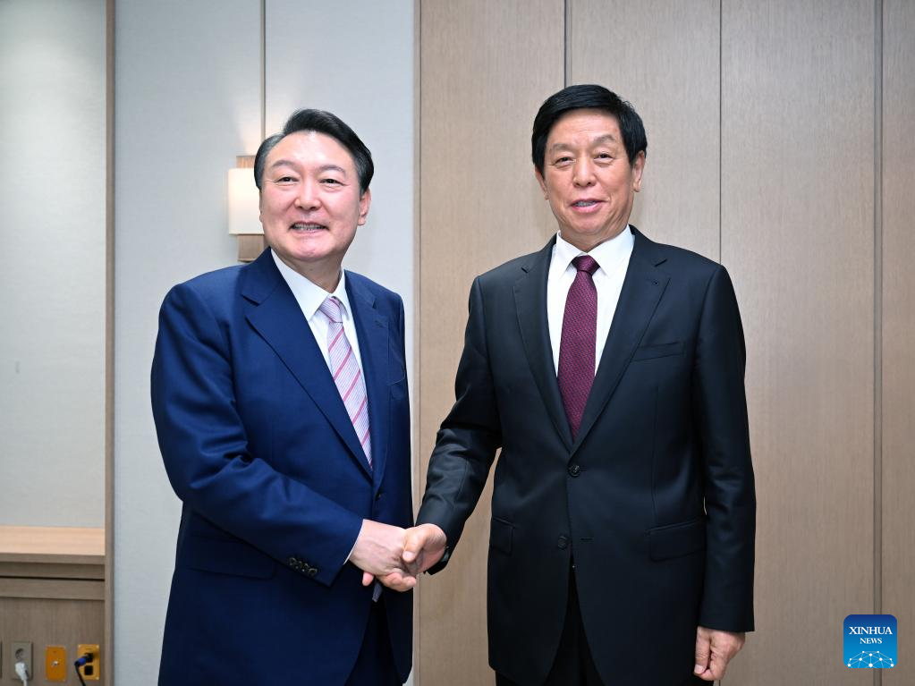 When meeting with the South Korean president, Li conveyed cordial greetings and best wishes from Chinese President Xi Jinping to Yoon.