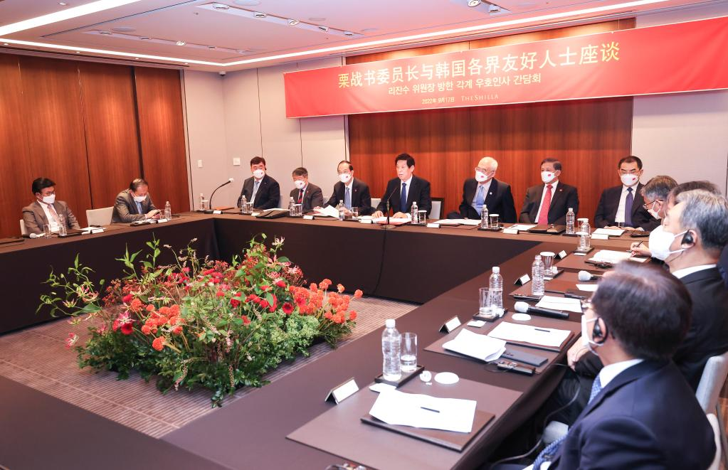 Li Zhanshu, chairman of China's National People's Congress (NPC) Standing Committee, meets with South Korea's friendly personnel from various sectors in Seoul, South Korea, Sept. 17, 2022. Li paid an official goodwill visit to South Korea from Thursday to Saturday, at the invitation of South Korea's National Assembly Speaker Kim Jin-pyo. (Xinhua/Pang Xinglei)