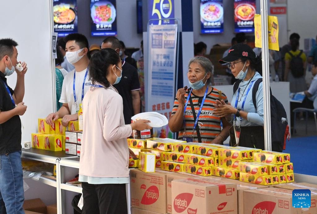 Visitors buy biscuits at the Indonesia pavilion during the 19th China-ASEAN Expo in Nanning, south China's Guangxi Zhuang Autonomous Region, Sept. 18, 2022. The four-day expo themed "Sharing RCEP New Opportunities, Building a Version 3.0 China-ASEAN Free Trade Area," will last till Monday as this year marks the first year of implementation of the Regional Comprehensive Economic Partnership (RCEP) free trade agreement. (Xinhua/Huang Xiaobang)