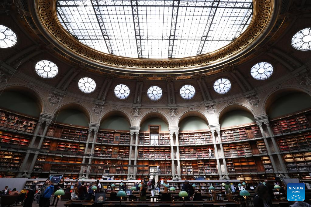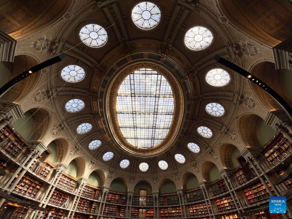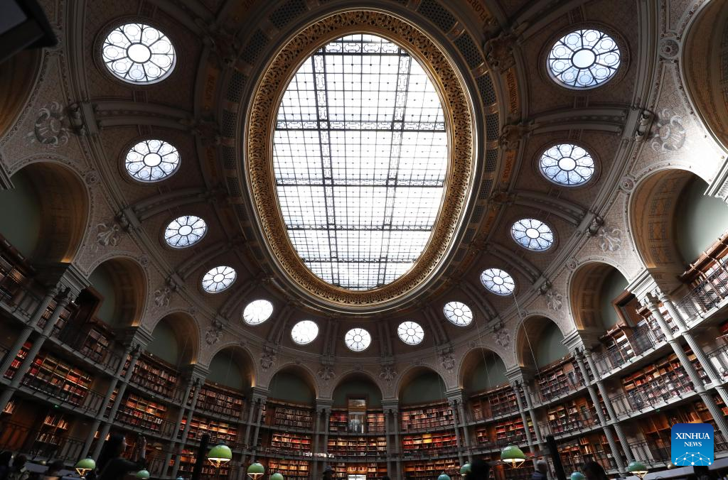 Photo taken with a mobile phone shows the Oval Room of the Richelieu French National Library in Paris, France, Sept. 17, 2022.