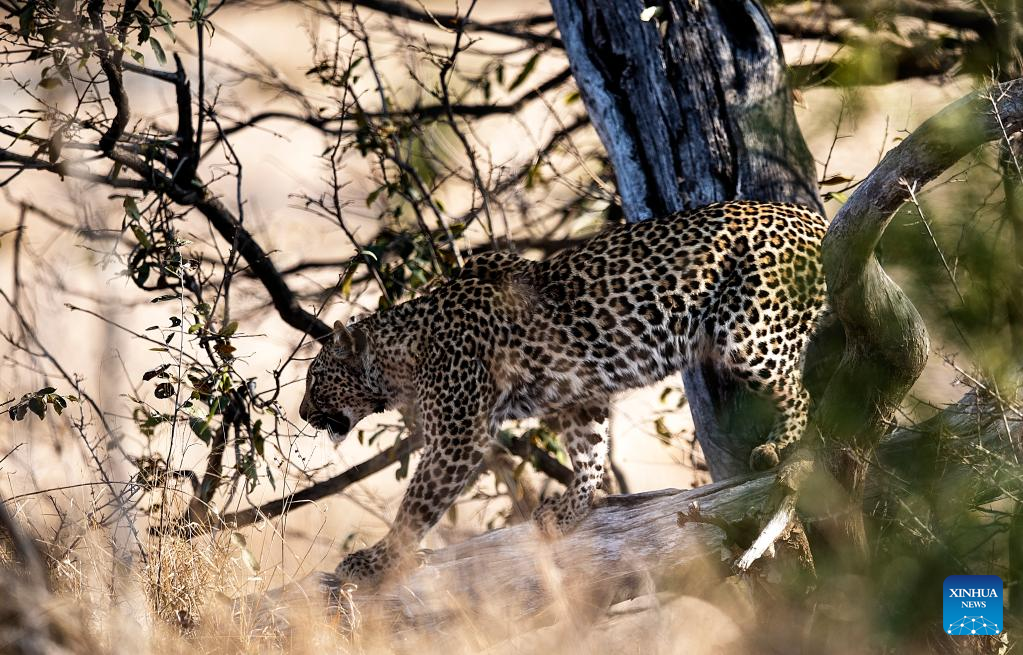 Photo taken on Sept. 17, 2022 shows an African leopard at the Kruger National Park, Mpumalanga, South Africa. Kruger National Park is one of the largest game reserves in Africa. Covering an area of 19,485 square kilometers in northeastern South Africa, the park is a home to an impressive number of species. (Xinhua/Zhang Yudong)