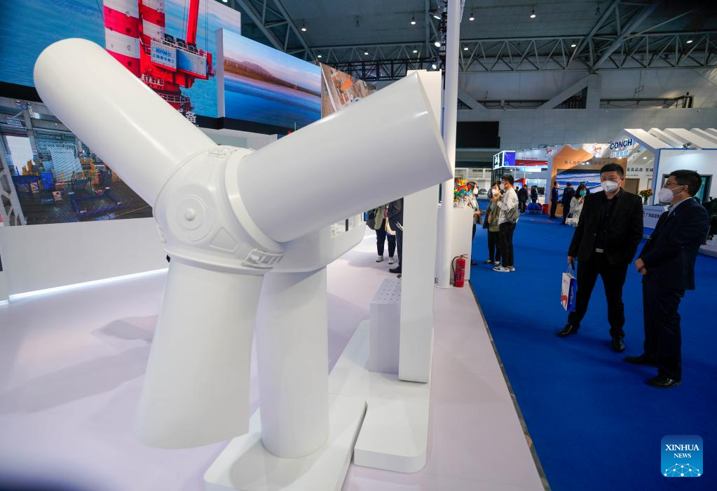 Visitors learn about wind power equipment at the seventh China-Eurasia Expo in Urumqi, northwest China's Xinjiang Uygur Autonomous Region, Sept. 20, 2022.
