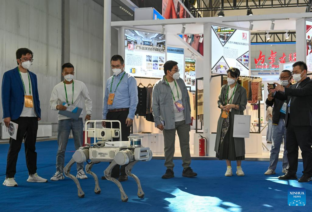 Visitors view a robot at the seventh China-Eurasia Expo in Urumqi, northwest China's Xinjiang Uygur Autonomous Region, Sept. 20, 2022.