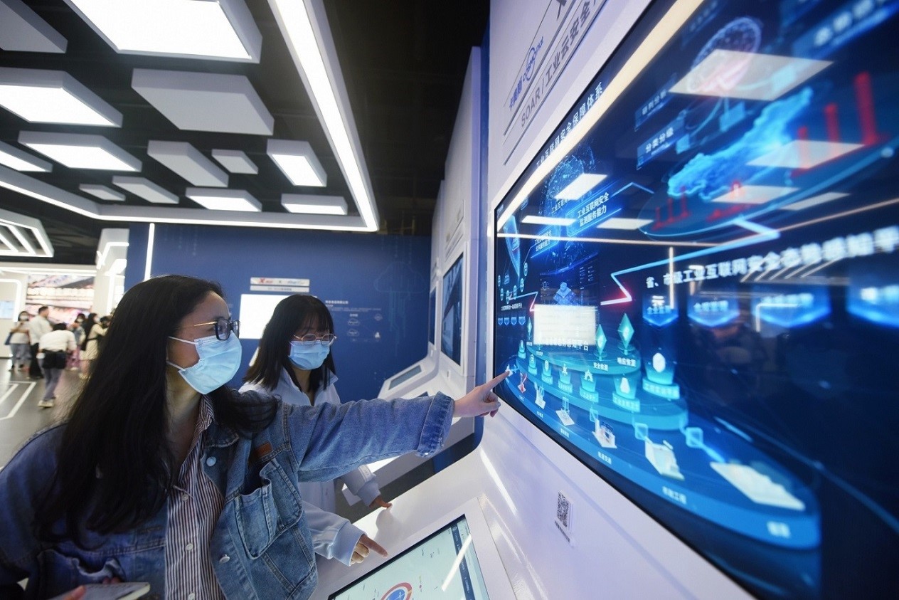 Citizens experience industrial cloud at the Yangtze River Delta (Hangzhou) Manufacturing Digitalization Empowerment Center in Xiaoshan district, Hangzhou, east China's Zhejiang province, May 2022. (Photo by Long Wei/People's Daily Online)