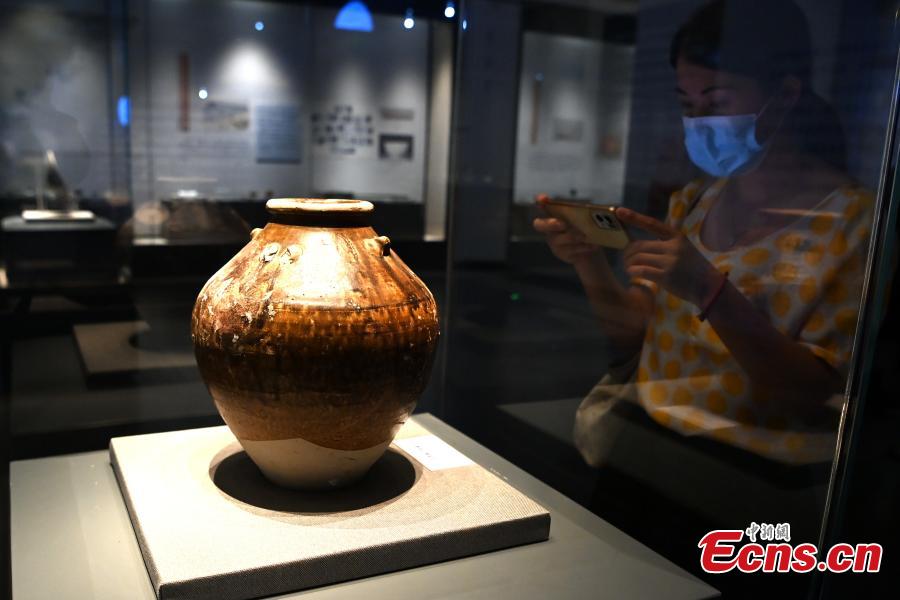 A cultural relic excavated from a shipwreck of the Yuan Dynasty (1271-1368) is displayed at an exhibition in Zhangzhou, east China's Fujian Province, Sept. 21, 2022. (Photo: China News Service/Zhang Jinchuan)