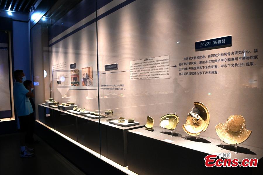 Cultural relics excavated from a shipwreck of the Yuan Dynasty (1271-1368) are displayed at an exhibition in Zhangzhou, east China's Fujian Province, Sept. 21, 2022. (Photo: China News Service/Zhang Jinchuan)
