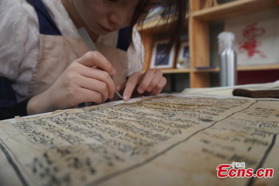 A student restores an ancient book at a vocational school in Lanzhou, northwest China's Gansu Province, Sept. 22, 2022. (Photo/China News Service)