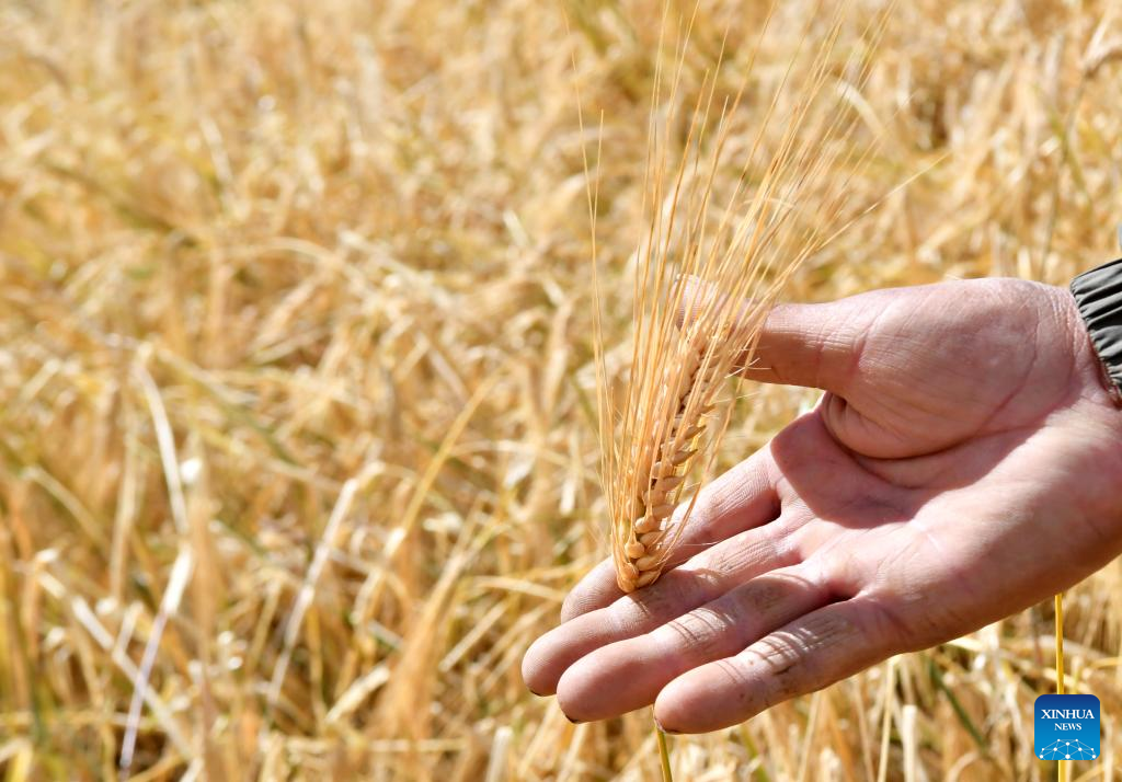 Villagers harvest highland barley in Jangraxar Township, Lhunzhub County of Lhasa, southwest China's Tibet Autonomous Region, Sept. 21, 2022. (Xinhua/Jiang Fan)