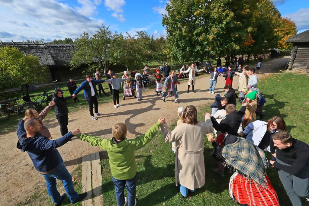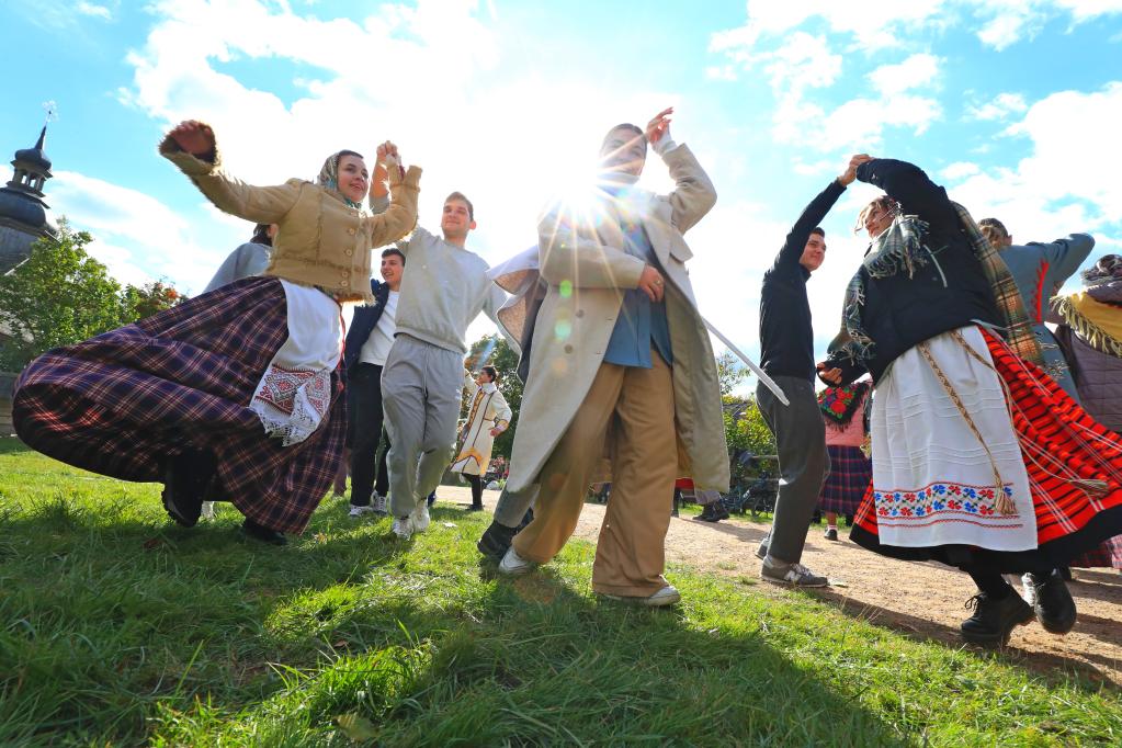 People dance during a celebration of a bumper harvest in the suburb of Minsk, Belarus, Sept. 25, 2022. (Xinhua/Henadz Zhinkov)