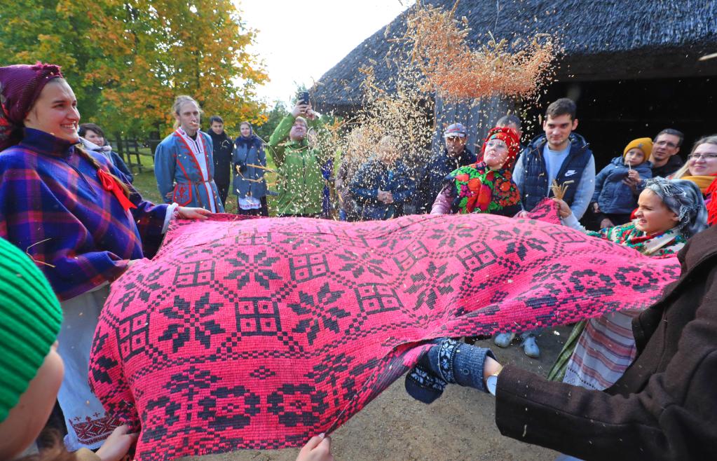 People attend a celebration of a bumper harvest in the suburb of Minsk, Belarus, Sept. 25, 2022. (Xinhua/Henadz Zhinkov)