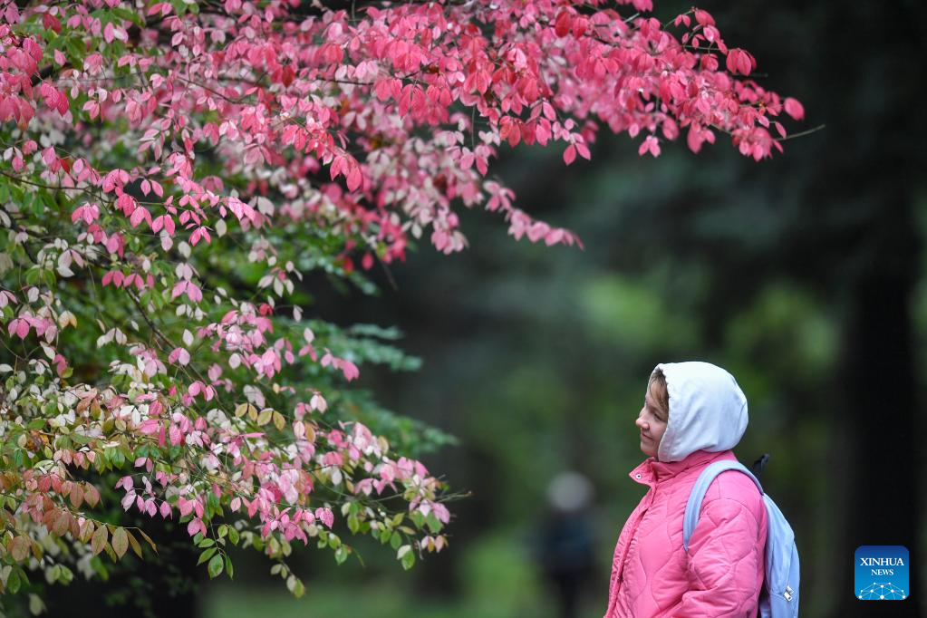 People walk at a park in Moscow, Russia, on Sept. 25, 2022. (Photo by Alexander Zemlianichenko Jr/Xinhua)