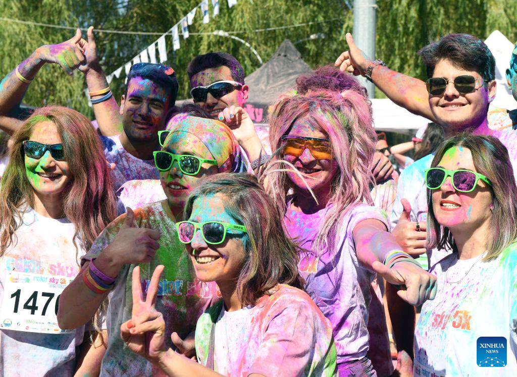 Runners take part in the "Color Sky 5K" running festival in Ankara, Trkiye, on Sept. 25, 2022. (Photo by Mustafa Kaya/Xinhua)