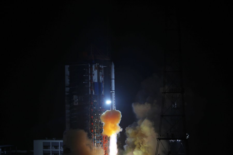 A Long March-2D carrier rocket carrying the Yaogan-36 satellite blasts off from the Xichang Satellite Launch Center in southwest China's Sichuan Province, Sept. 26, 2022. (Photo by Qiu Lijun/Xinhua)