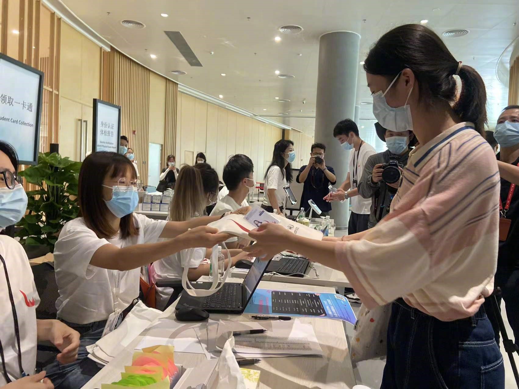 The first student of the Hong Kong University of Science and Technology (Guangzhou) goes for student registration, Aug. 20, 2022. (Photo/Guangzhou Daily)