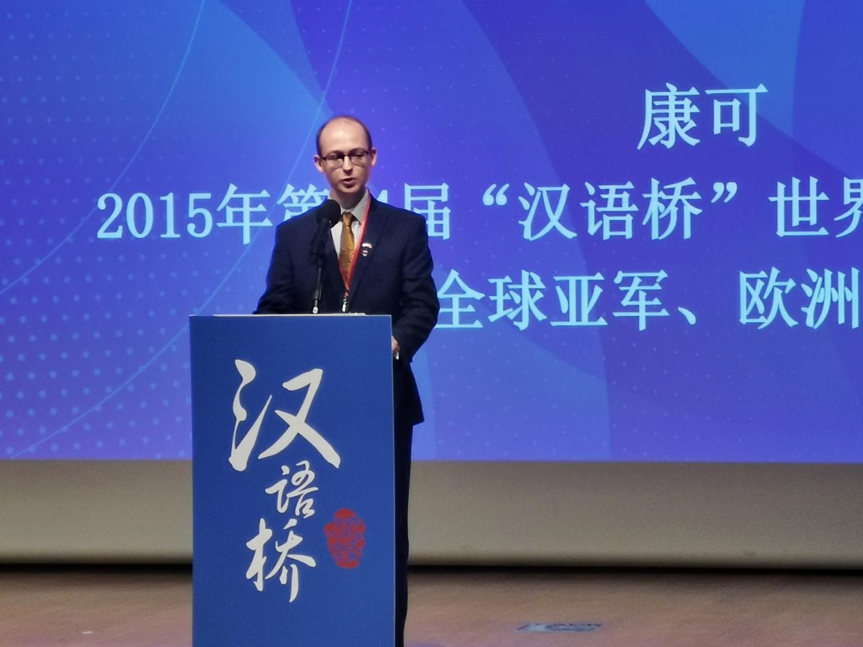 At the opening ceremony, Patterson, as the European Champion in the 2015 Chinese Bridge language competition for foreign college students, recited a poem authored by the Chinese President in 1990 in memory of Jiao Yulu, a long-deceased revolutionary icon of China.