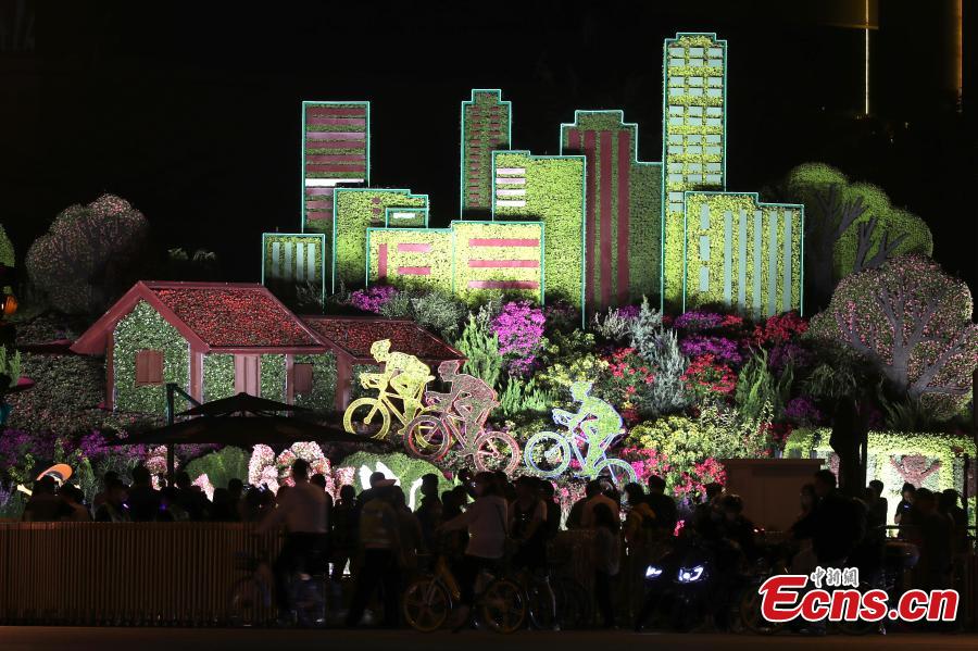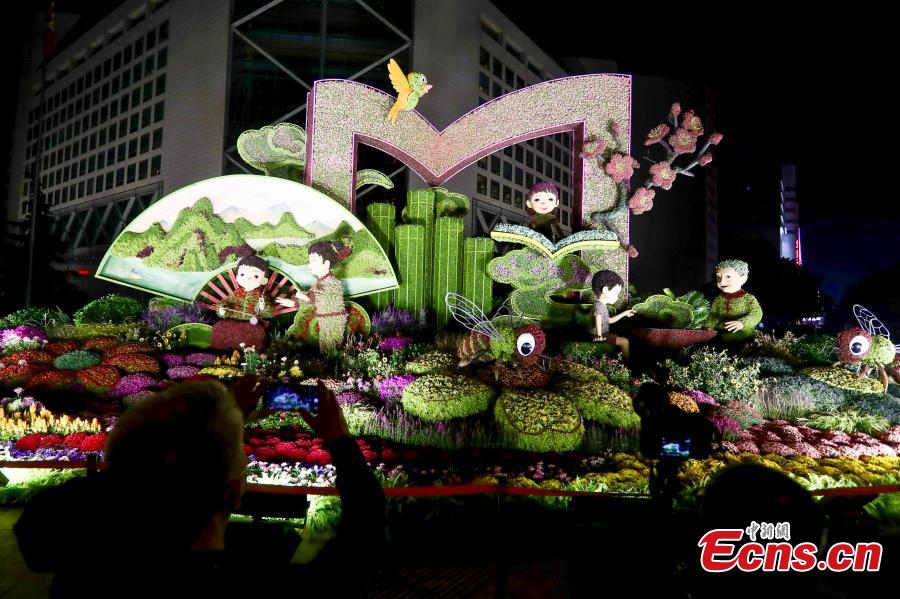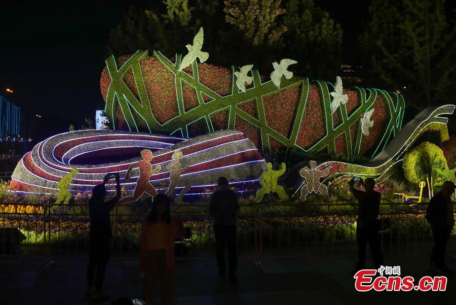 Flower displays decorate Chang'an Avenue for National Day in Beijing
